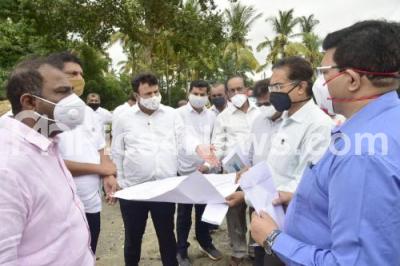Photo Caption : Mayor Gautham Kumar inspects the development work of 20 meter corridor work at Madiwala lake, also seen are MLA Satish Reddy, Deputy Mayor Ram Mohan Raj and others, in Bengaluru on Monday 03 August 2020