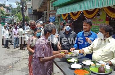 Former MLC Saravana distributed food for 1 rupee for the people on the occasion 3rd Anniversary celebrations of Appaji Canteen, in Bengaluru on Thursday 06th August 2020