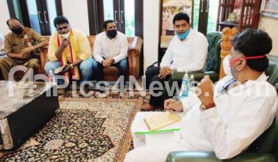 Photo Caption : Ola, Uber and taxi owner association leaders meet KPCC President DK Shivakumar at his residence, in Bengaluru on Saturday 8th August 2020