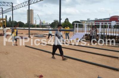 Event Description : Preparation ongoing for Independence Day Celebrations at Manekshaw Parade Grounds in, in Bengaluru on Saturday 8th August 2020