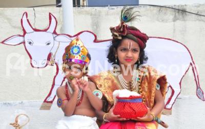 Photo Caption : Children dressed like Sri Krishna ahead of Sri Krishna Janmashtami celebrations, in Bengaluru on Sunday 09th August 2020