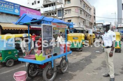 Traffic Police Constable records Violations at Russell Market, in Bengaluru on Sunday 09th August 2020