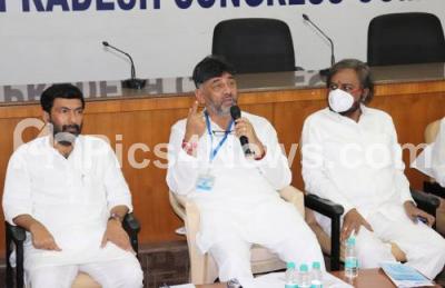 Photo Caption : KPCC President DK Sivakumar meeting with all District Congress Committee Chairmen, state chairmen of various sales / divisions, health handicrafts committee, health handling committee and disciplinary committee at KPCC office, also seen are Working Presidents Eshwar Khandre, Salim Ahmed, Dhruvanarayana, Chairman of Health Handicrafts Committee, Former Speaker KV Koliwada and others, in Bengaluru on Monday 10th August 2020