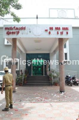 Photo Caption : Ransacked Kadugondanahalli Police Station after violence broke out overnight in Devara Jevana Halli and Kadugondanahalli area following a "derogatory" Facebook post, 3 people have been killed and many injured, in Bengaluru on Wednesday 12th August 2020