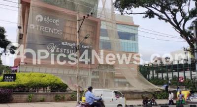 Event Description : Safety nets being put up fearing riots after Police implemented section 144 post DJ Halli Riots at Orion East Mall, , in Bengaluru on Wednesday 12th August 2020
