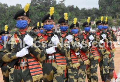 Photo Caption : Rehearsal parade ahead of Independence Day celebrations at Manekshaw Parade Grounds, in Bengaluru on Thursday 13th August 2020