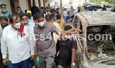 Congress MLA Akanda Srinivas visited his house which was burnt in the riot hit area after a mob went on a rampage on Tuesday over a social media post, allegedly posted by Congress MLAs relative, in Bengaluru on Thursday 13th August 2020