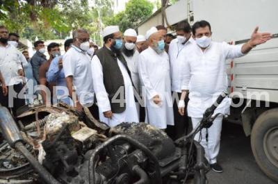 Photo Caption : MLA, Akhanda Srinivas, MLA Zameer Ahmed and Leaders of Muslim Community seen visiting riot Hit area of DJ Halli , in Bengaluru on Friday 14th August 2020