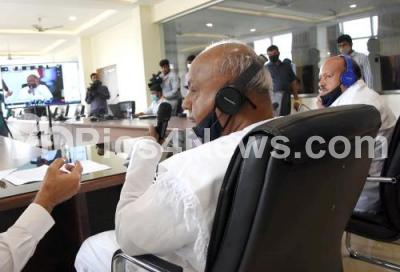 JD(S) Supremo HD Devegowda and JD(S) State President HK Kumar Swamy interacting with JD(S) MLAs, MLCs, District Presidents on Corona status through video conference at JD(S) office, in Bengaluru on Monday 17th August 2020