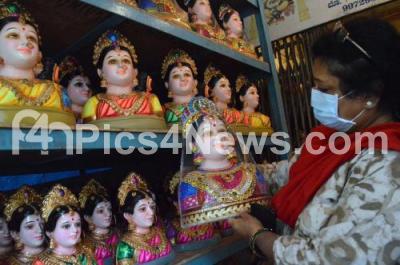 Event Description : Gowri Ganesha Idols lined up for sale ahead of Ganesha Chaturthi festival, in Bengaluru on Tuesday 18th August 2020