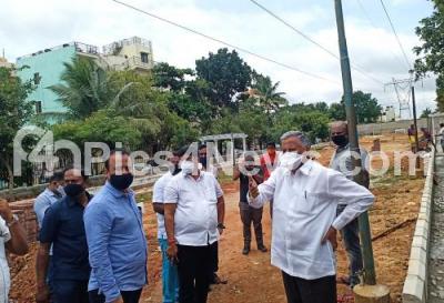Photo Caption : Minister V Somanna inspects the developments works in ward 131 Nayandanahalli and 104 Ward Govindraj Nagar with BBMP officials and Ward Councillors, in Bengaluru on Tuesday 18th August 2020