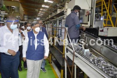 Minister Jagadish Shetter visited the Industrial area after the inauguration of traffic signal light and park at Bommasandra Industrial Town, in Bengaluru on Friday 21st August 2020