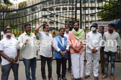 Photo Caption : Vatal Nagaraj and others protesting and demanding to stop the Probationary Inspectorships exams, in Bengaluru on Friday 21st August 2020