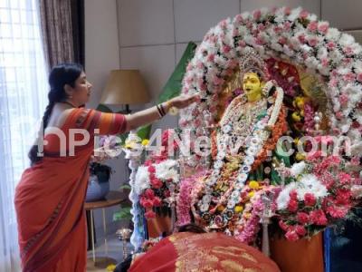 Photo Caption : BBMP Corprator Nagarathna Ramamurthy celebrates Gowri Festival at her Residence along with Former MLC Tara, in Bengaluru on Friday 21st August 2020