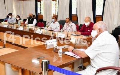 Photo Caption : CM BS Yeddiyurappa with Mahendra Jain, Additional Chief Secretary of the Economic Department ISN Prasad and others at Karnataka Electricity Board Governing meeting at home office Krishna, in Bengaluru on Monday 24th August 2020