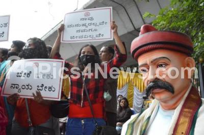 Event Description : Members of Akhila Karnataka Laghu Sangeetha and Samskruthika Kalavidara Sangha stage protest for various demands at Maurya Circle, in Bengaluru on Monday 24th August 2020