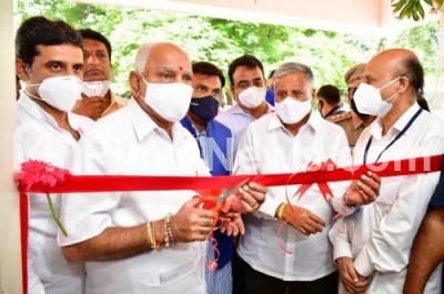 Photo Caption : CM BS Yediyurappa DCM Ashwath Narayan and others seen during inauguration of Super Specialty Hospital at Shivajinagar, in Bengaluru on Wednesday 26th August 2020