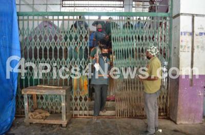 BBMP Workers prepare to open market place with social distancing norms at KR Market, in Bengaluru on Thursday 27th August 2020