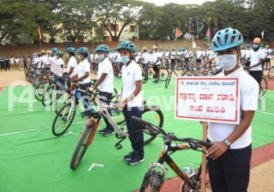 Event Description : Karnataka State Reserve Police personnel participated in Bicycle Jatha Rally program to raise awareness of life saving by donating plasma in public at Ashok Nagar Grounds, in Bengaluru on Sunday 30th August 2020