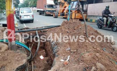 Road dug up for the KEB works at Rajajinagar Industrial Town, Rajkumar Ward, in Bengaluru on Sunday 30th August 2020