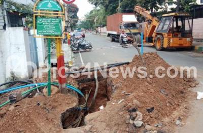 Photo Caption : Road dug up for the KEB works at Rajajinagar Industrial Town, Rajkumar Ward, in Bengaluru on Sunday 30th August 2020