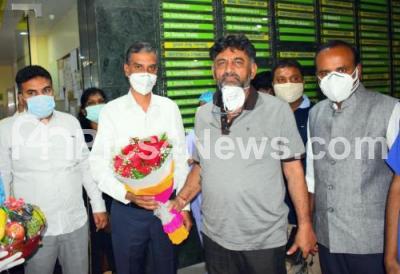 Photo Caption : KPCC President DK Shivakumar discharged from hospital after recovering from Covid 19, in Bengaluru on Monday 31st August 2020