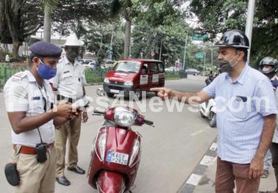 Police personnel impose fine on Traffic violators, in Bengaluru on Tuesday 1st September 2020