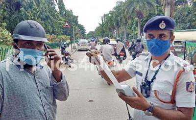 Photo Caption : Police personnel impose fine on Traffic violators, in Bengaluru on Tuesday 1st September 2020