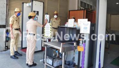 Metro personnel seen during preparations to resume operations for public, in Bengaluru on Friday 4th September 2020