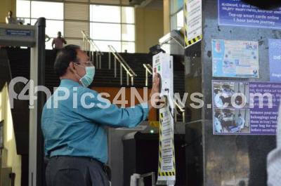 Metro Personnel seen during preparations to resume operations as per safety guidelines at Byappanahalli Metro Station, in Bengaluru on Saturday 5th September 2020