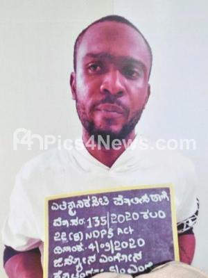 Photo Caption : Accused Junion Mgone Kolego who arrested by Electronic police personnel and recovered 12gram MDMA drugs during a press conference at CP Office, in Bengaluru on Monday 7th September 2020