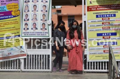 Students seen after attending Second PUC Exams at National College, in Bengaluru on Monday 7th September 2020