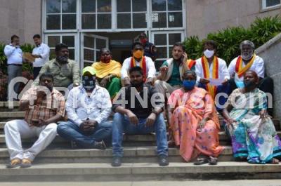 Event Description : Street hawkers of KR market stage protest at BBMP office demanding space allocation, in Bengaluru on Tuesday 8th September 2020