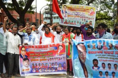 Members of Dalit associations stage protest for various demands at SBM Circle, in Bengaluru on Tuesday 8th September 2020