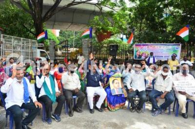 Photo Caption : Members of Dalit associations stage protest for various demands at Maurya Circle, in Bengaluru on Thursday 10th September 2020
