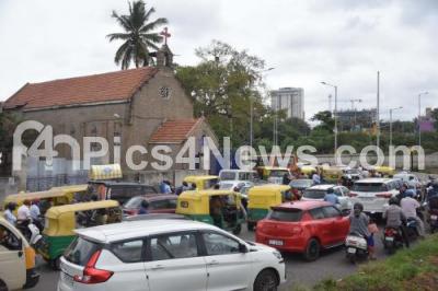 Photo Caption : Traffic jam congestions reported at Okalipura Underpass Junction, in Bengaluru on Friday 11th September 2020