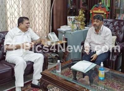 Photo Caption : Former MLA KN Rajanna meets KPCC President DK Shivakumar at his residence, in Bengaluru on Monday 14th September 2020