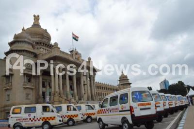 CM BS Yediyurappa flagged off ambulance services at Vidhana Soudha, in Bengaluru on Tuesday 15th September 2020