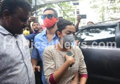 Photo Caption : Film Actors Diganth and Aindrita Ray arrive at CCB to give statements related to Drug Racket, in Bengaluru on Wednesday 16th September 2020