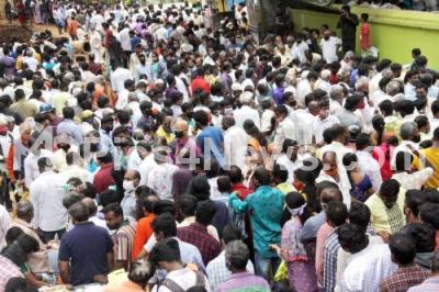 Devotees perform rituals to departed souls on the occasion of Final day of Pitru Paksha-Mahalaya Amavasya at Kashi Vishwanath Temple, in Bengaluru on Thursday 17th September 2020