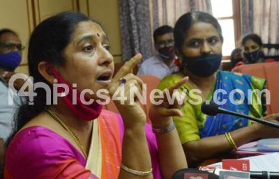 Joint Secretary Legislative Council Nirmala, Deputy Secretary Legislative Council Gayatri during press conference on Council and Assembly preparations at Vidhan Soudha , in Bengaluru on Friday 18th September 2020