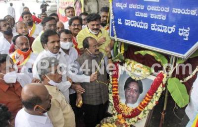 Photo Caption : Gurudev Narayan Kumar with Somashekar, Palanethra and others at the inauguration of G Narayan Kumar Road at Tollgate, in Bengaluru on Friday 18th September 2020