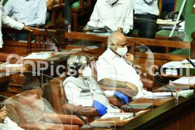 Photo Caption : CM BS Yediyurappa with DCM Govind Karjola and others during Assembly session at Vidhana Soudha, in Bengaluru on Monday 21st September 2020
