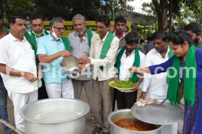 Members of Raitha Sangha And Hasiru Sene stage protest for the 2nd day against Land Reform Act and other demands at Maurya Circle, in Bengaluru on Tuesday 22nd September 2020