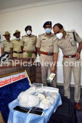Event Description : City Market Police display over 3 crore rupees worth Drug seized during Press Meet at DCP West Office, in Bengaluru on Tuesday 23rd September 2020