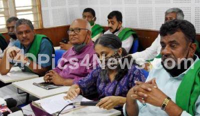 Photo Caption : Farmer leaders seen during meeting at Gandhi Bhavan, in Bengaluru on Thursday 24th September 2020