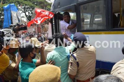 Event Description : Farmers Protest continues for 5th Day against Land Reforms act and various demands at SBM Circle, in Bengaluru on Friday 25th September 2020