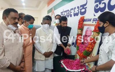 Photo Caption : Congress Leaders KH Muniyappa, Saleem Ahamed and others paying floral tribute to Congress MLA of Basavakalyana B Narayana Rao who passed away yesterday, in Bengaluru on Friday 25th September 2020