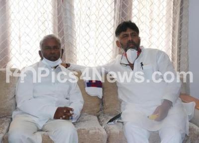 Photo Caption : KPCC President D K Shivakumar visited Sidlaghatta constituency MLA V Muniyappa at his residence, in Bengaluru on Sunday 27th September 2020