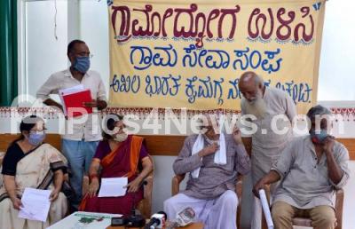Freedom Fighter Doreswamy, Theater Activist Prasanna, Handloom & Craft Designers Pavitra Muddayya & Ullaskar Dey Address A Press Conference Organised By The Members Of Save Gramodyoga Campaign At Gandhi Bhavan, in Bengaluru On Tuesday 29th September 2020